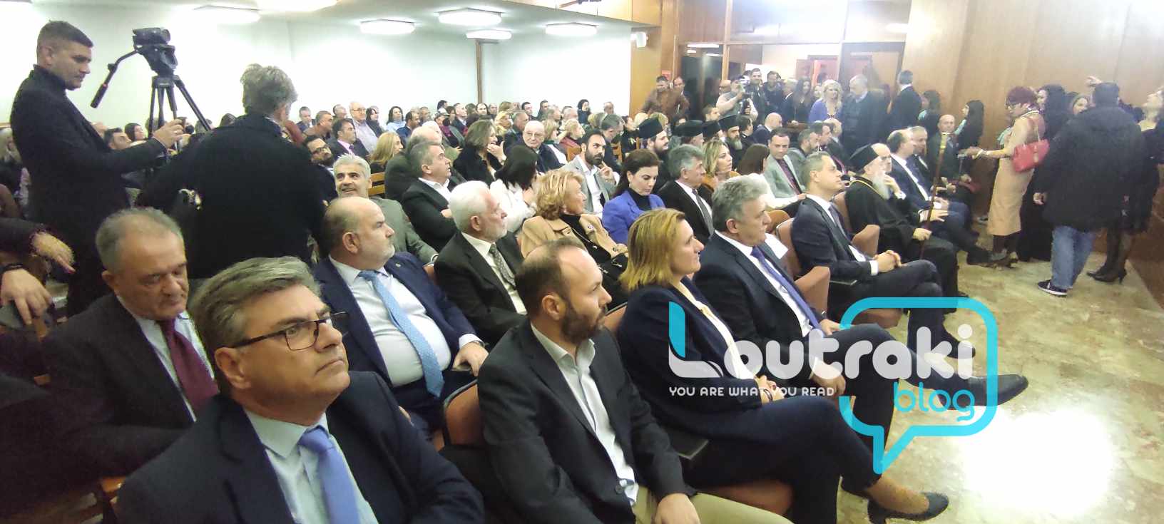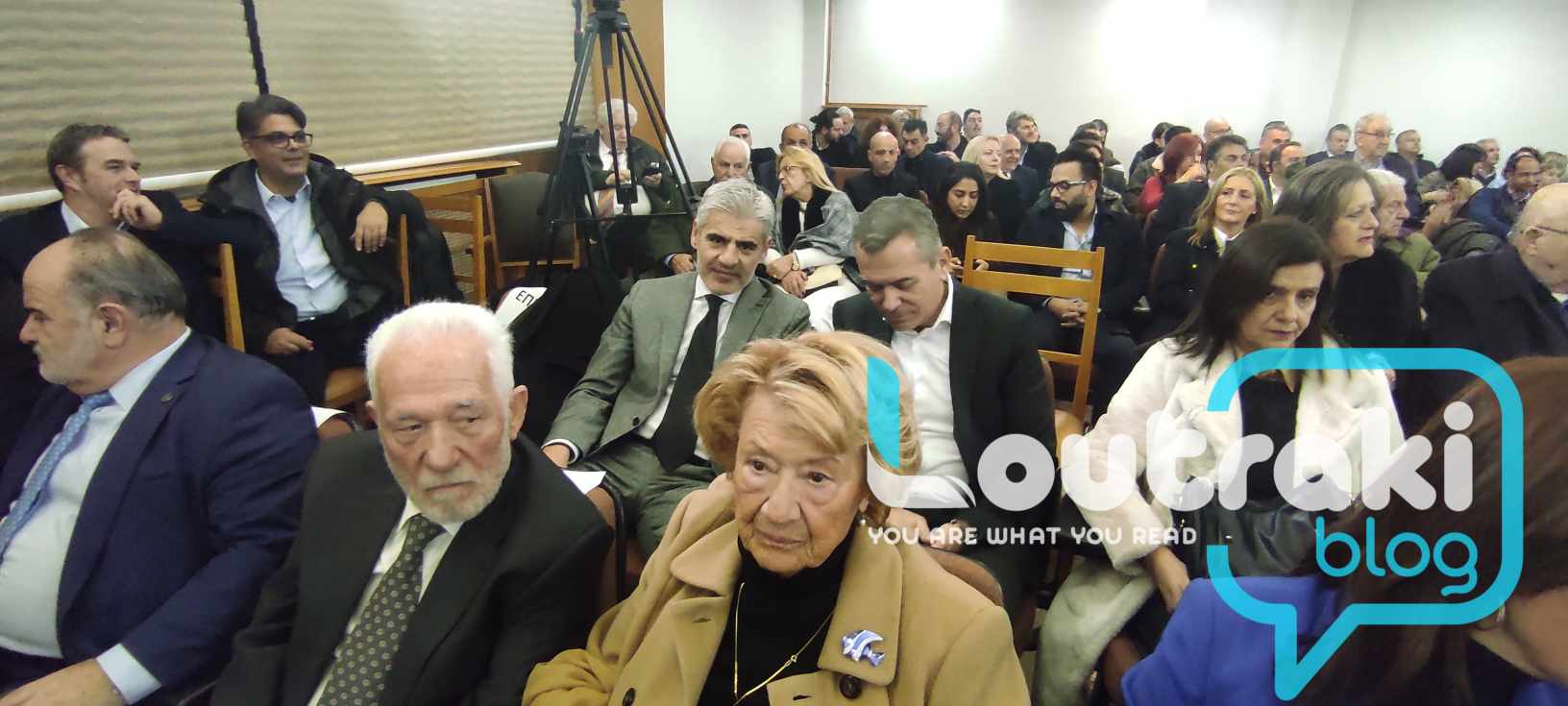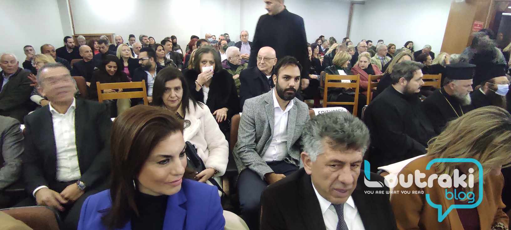 Η αίθουσα κατάμεστη, πολύ μικρή για να χωρέσει τον κόσμο, αρκετοί έμειναν όρθιοι στις σκάλες. Το παρών έδωσαν ο Σεβασμιότατος Μητροπολίτης κ. Διονύσιος, ο Υφυπουργός κ. Νίκος Ταγαράς, οι βουλευτές κ. Μαριλένα Σούκουλη, κ. Γιώργος Ψυχογιός, πολιτικοί όλων των βαθμίδων της Αυτοδιοίκησης, εκπρόσωποι των Σωμάτων Ασφαλείας, ο Πρόεδρος της ΓΕΣΕΒΕ, εκπρόσωποι Φορέων, Σωματείων και Συλλόγων, μέλη του Επιμελητηρίου και εκλεκτοί προσκεκλημμένοι.