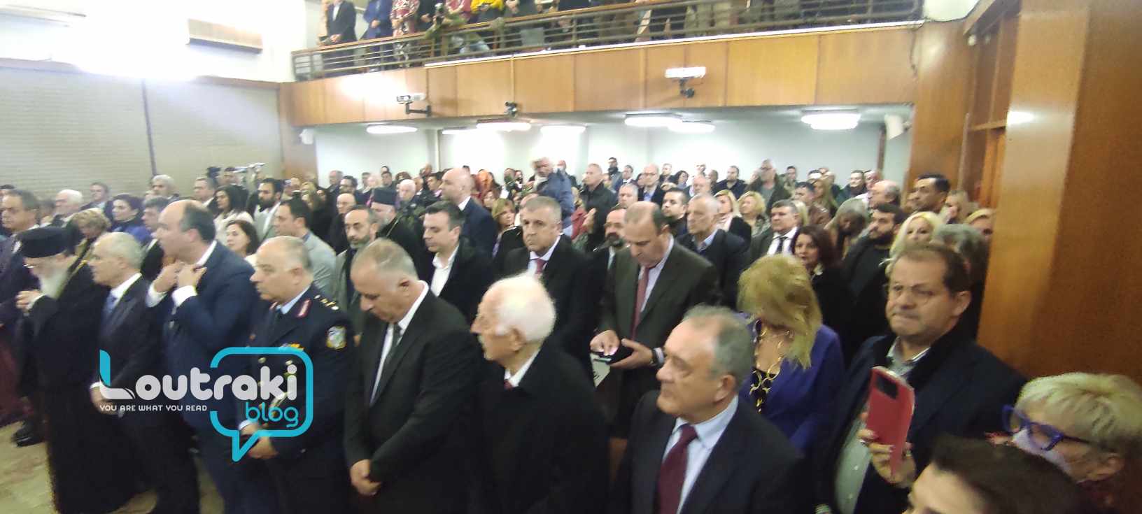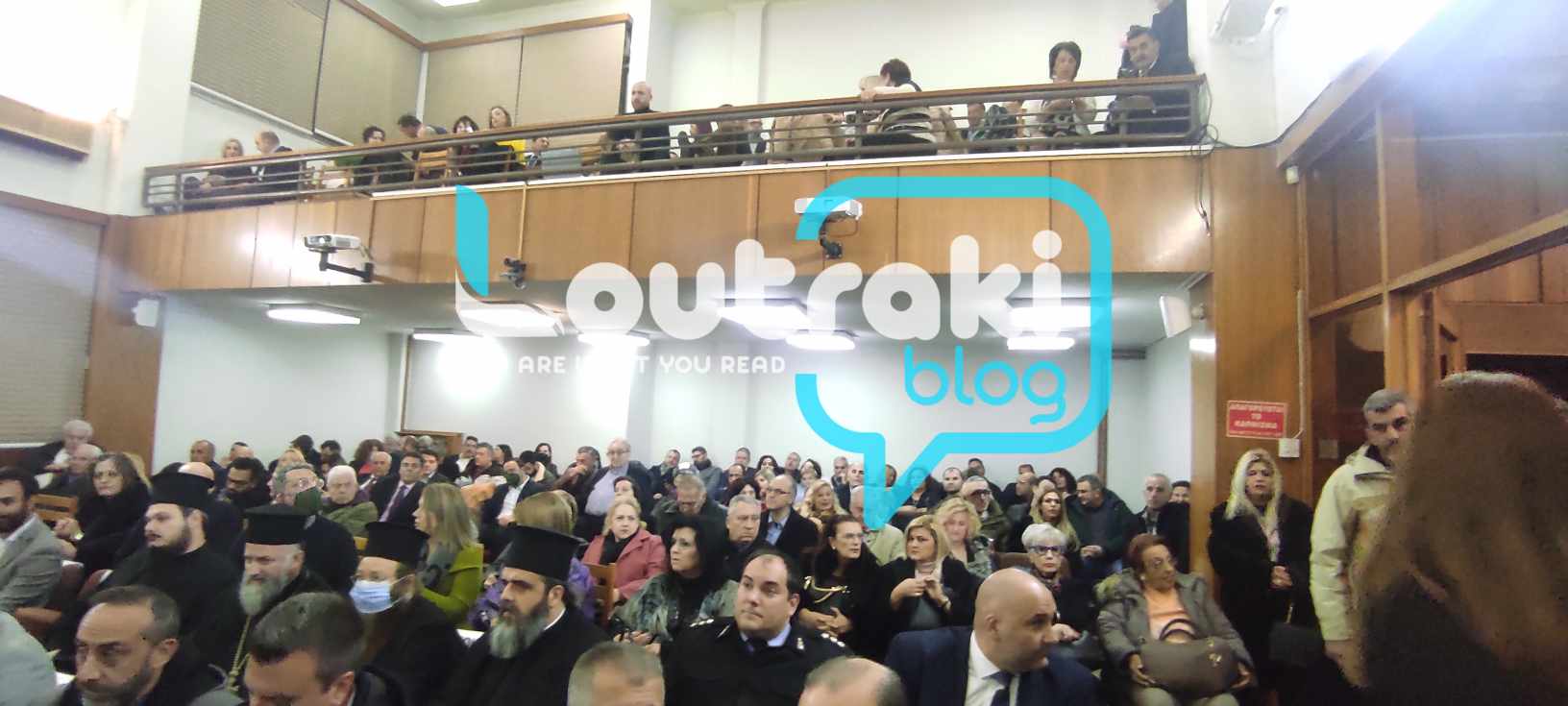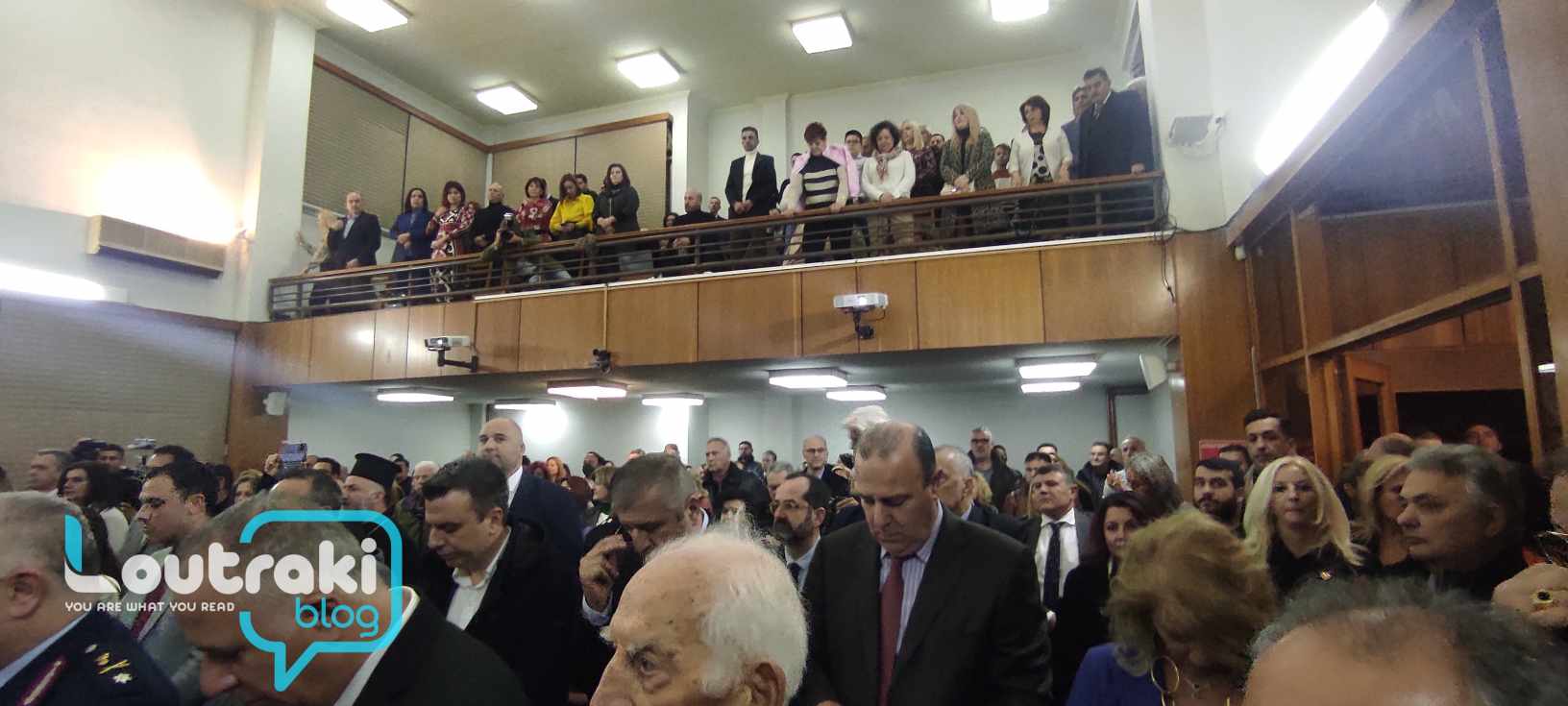 Η αίθουσα κατάμεστη, πολύ μικρή για να χωρέσει τον κόσμο, αρκετοί έμειναν όρθιοι στις σκάλες. Το παρών έδωσαν ο Σεβασμιότατος Μητροπολίτης κ. Διονύσιος, ο Υφυπουργός κ. Νίκος Ταγαράς, οι βουλευτές κ. Μαριλένα Σούκουλη, κ. Γιώργος Ψυχογιός, πολιτικοί όλων των βαθμίδων της Αυτοδιοίκησης, εκπρόσωποι των Σωμάτων Ασφαλείας, ο Πρόεδρος της ΓΕΣΕΒΕ, εκπρόσωποι Φορέων, Σωματείων και Συλλόγων, μέλη του Επιμελητηρίου και εκλεκτοί προσκεκλημμένοι.