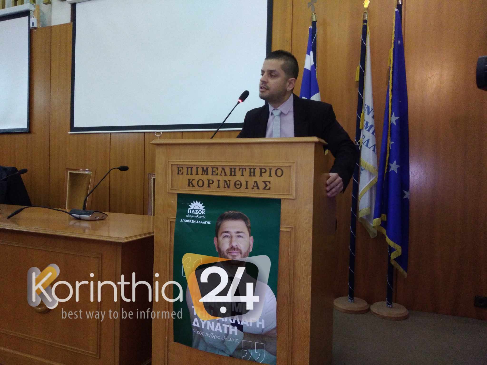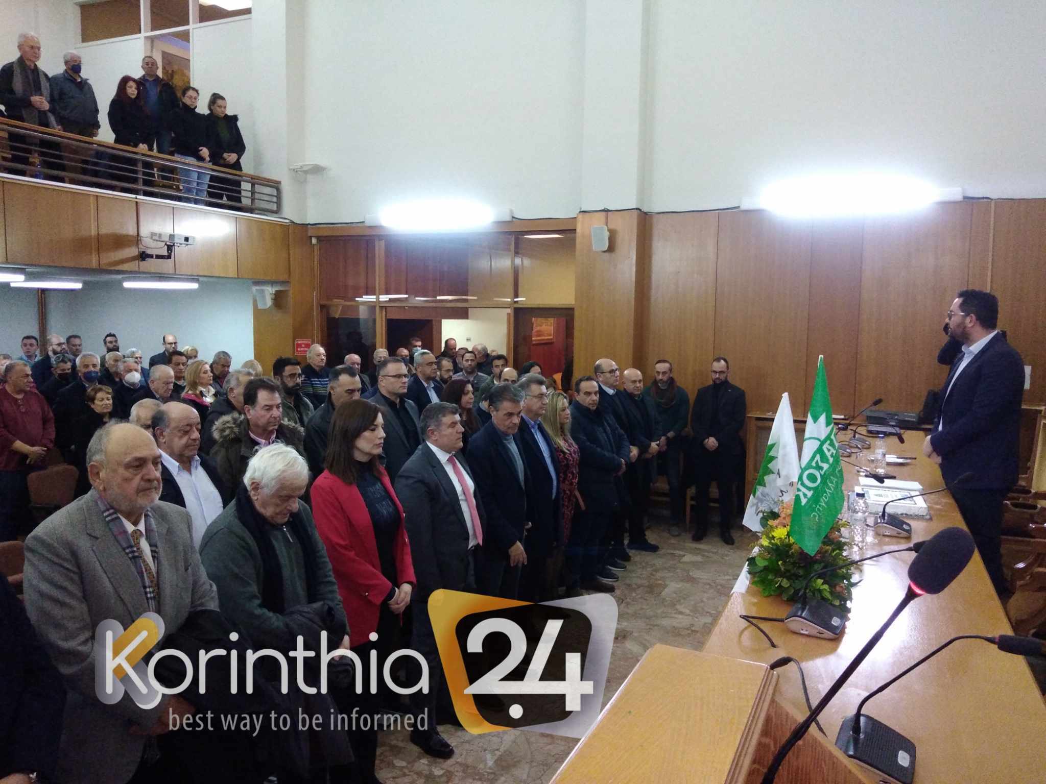 Ο Γραμματέας της Νομαρχιακής Επιτροπής Θάνος Θεοχάρης πήρε το λόγο, ζητώντας να κρατηθεί ενός λεπτού σιγή στη μνήμη του πρώην υπουργού του ΠΑΣΟΚ, του Κορίνθιου Θεόδωρου Κοτσώνη.