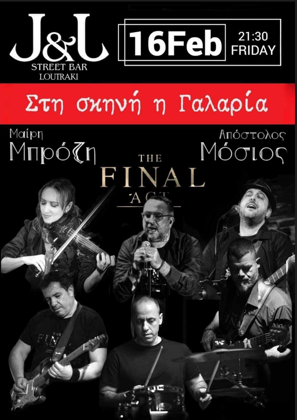 Την Παρασκευή 16/2 οι Final Act θα απογειώσουν την διάθεσή σας στο bar J&J στο Λουτράκι! Φροντίστε να είστε από νωρίς εκεί γιατί προβλέπεται κοσμοσυρροή.