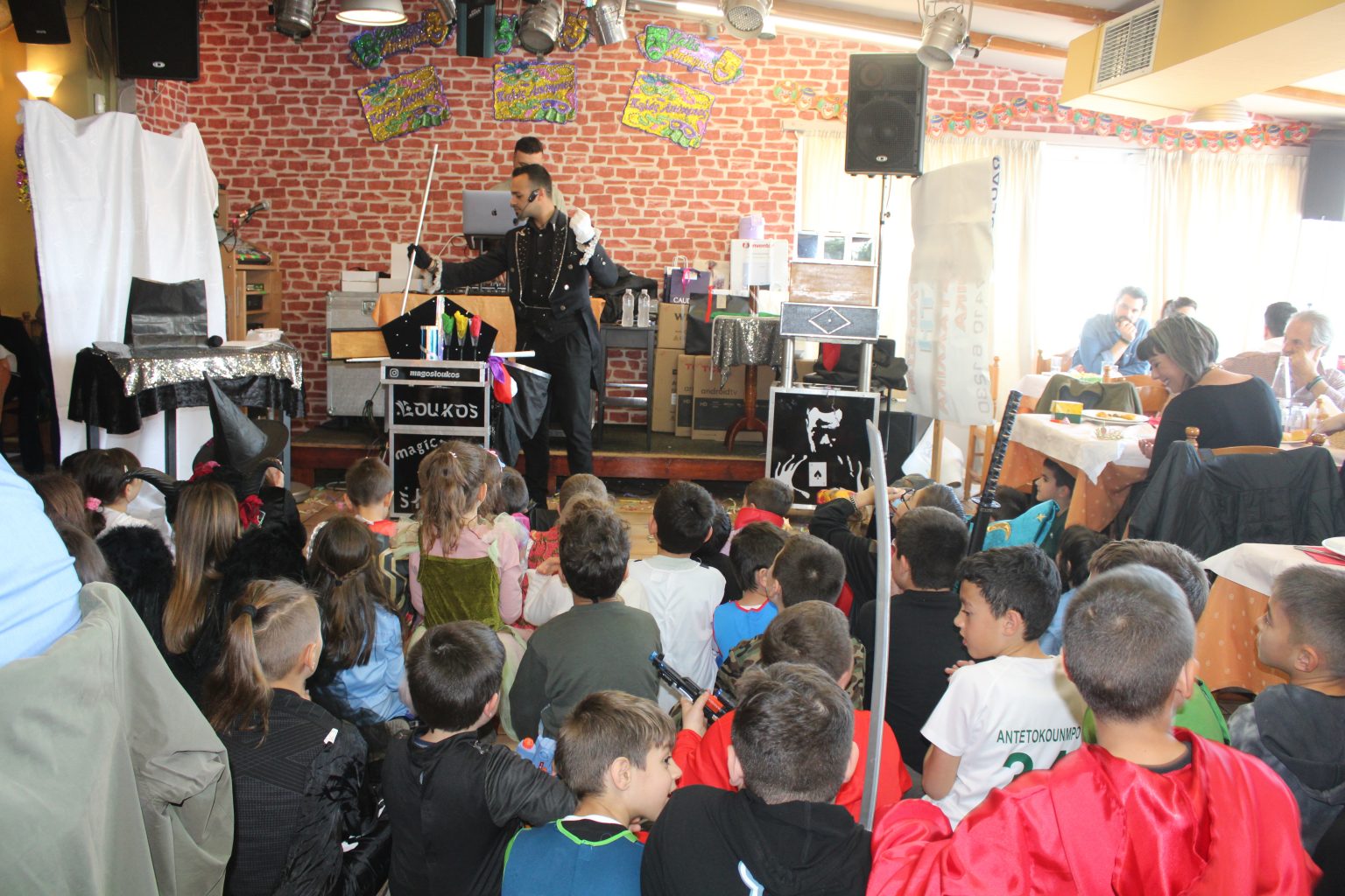 Ο κόσμος γέμισε από νωρίς την αίθουσα και το πάρτι ξεκίνησε με τον μάγο Λούκο να διασκεδάζει μικρούς και μεγάλους.