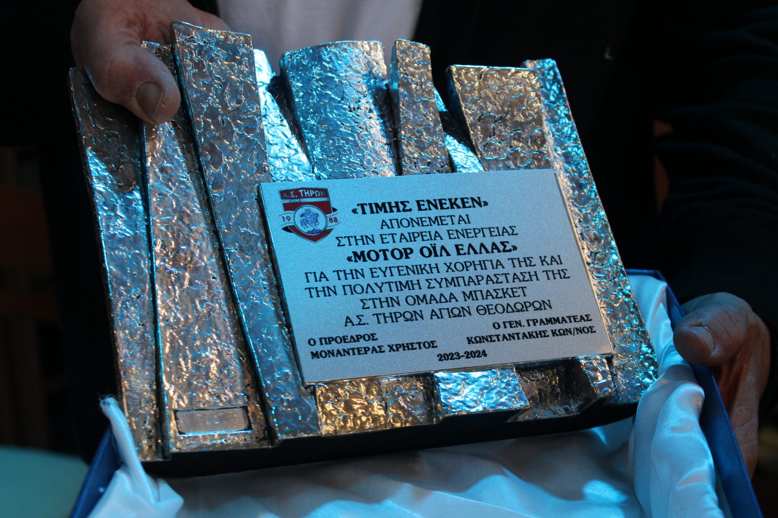 Η διοίκηση ευχαρίστησε και βράβευσε τον Γενικό Γραμματέα της ομάδας κ. Κωνσταντάκη Κωνσταντίνο, τον κ. Κωνσταντίνο Μπούρα (Kuko’s Summer Bar) και την Motor Oil για την πολύτιμη συμπαράσταση και τις ευγενικές χορηγίες τους.