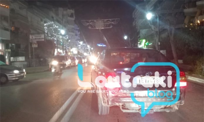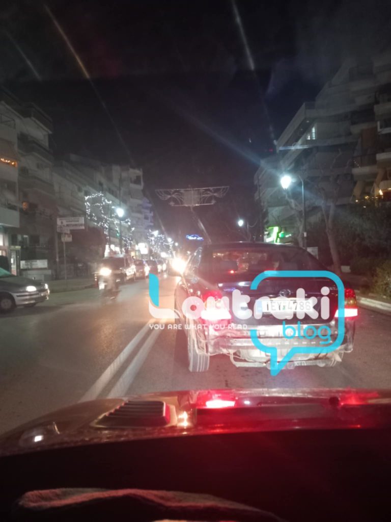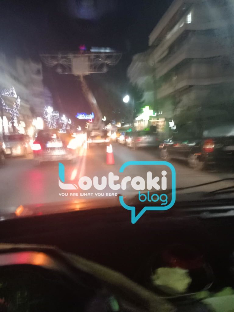 Κυκλοφοριακό μποτιλιάρισμα στην κεντρική Λεωφόρο του Λουτρακίου. Αιτία είναι ο χριστουγεννιάτικος στολισμός.