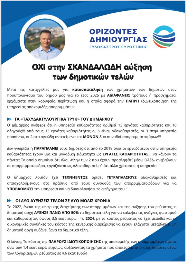 Ερωτήσεις προς τη δημοτική αρχή για το συμβούλιο λογοδοσίας της 24ης Φεβρουαρίου 2025