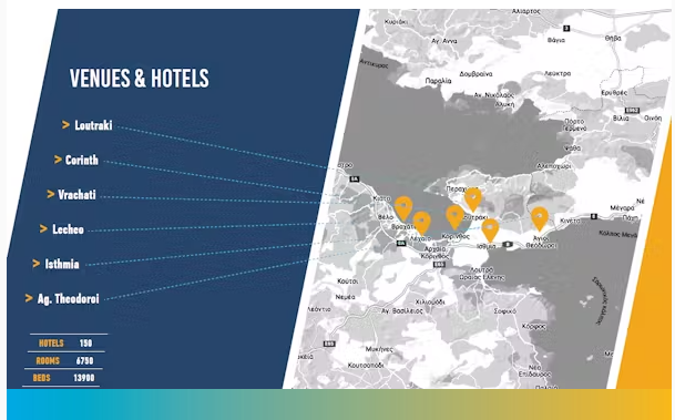 | Χώροι Διεξαγωγής Οι αγώνες θα πραγματοποιηθούν σε κορυφαίες αθλητικές εγκαταστάσεις της περιοχής, μεταξύ των οποίων:Πόλη του ΛουτρακίουSportcamp – Youth Sports Training CenterΔημοτικό Στάδιο Λουτρακίου “Χρήστος Θώδης”Κλειστό Γυμναστήριο “Γαλανοπούλειο” ΛουτρακίουΚολυμβητήριο ΛουτρακίουLoutraki Club Hotel CasinoWyndham Loutraki Poseidon ResortΓήπεδο Αγίων Θεοδώρων (11×11)Κλειστό Γυμναστήριο Αγίων ΘεοδώρωνΚλειστό Γυμναστήριο ΚορίνθουΕθνικό Στάδιο ΚορίνθουΚλειστό Γυμναστήριο ΒέλουΚλειστό Γυμναστήριο Βραχατίου |