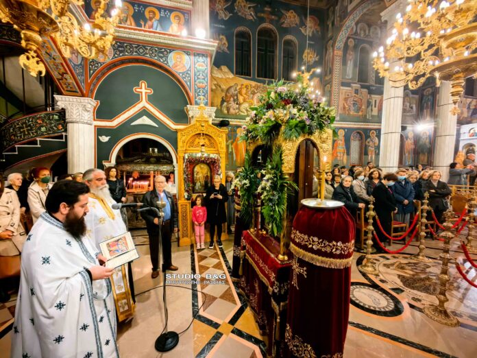 Την ακολουθία των χαιρετισμών τέλεσαν οι Ιερείς π. Ελευθέριος Μίχος εφημέριος του ιερού ναού Ευαγγελιστρίας Ναυπλίου και π. Νικόλαος Μίχος εφημέριος του Αγίου Νικολάου Ναυπλίου .