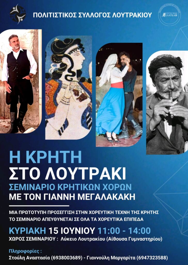 Ο Πολιτιστικός Σύλλογος Λουτρακίου «Μελαγκάβι» διοργανώνει σεμινάριο παραδοσιακών χορών με αφιέρωμα στην Κρήτη