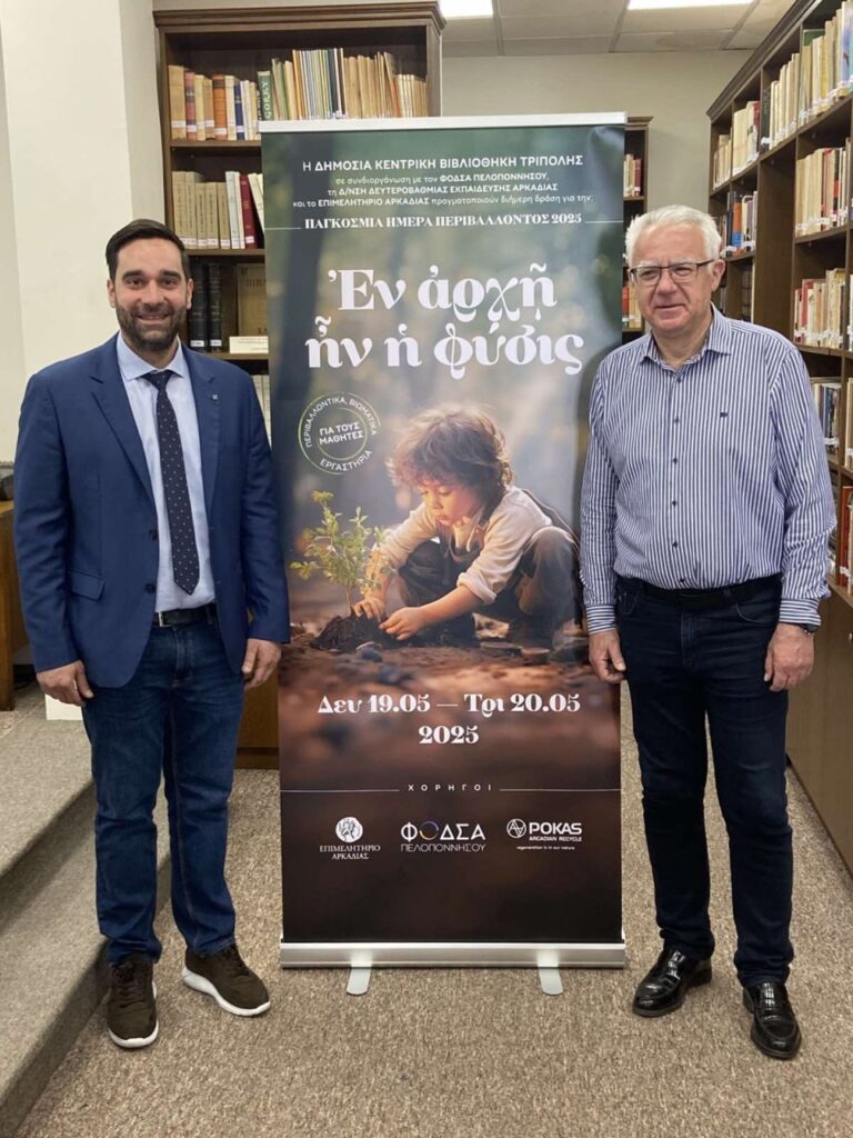 Με αφορμή την Παγκόσμια Ημέρα Περιβάλλοντος, η Δημόσια Κεντρική Βιβλιοθήκη Τρίπολης πραγματοποίησε με ιδιαίτερη επιτυχία τη διημερίδα «Εν αρχή ην η φύσις», μια δράση αφιερωμένη στην περιβαλλοντική εκπαίδευση και την καλλιέργεια οικολογικής συνείδησης στους μαθητές της περιοχής.