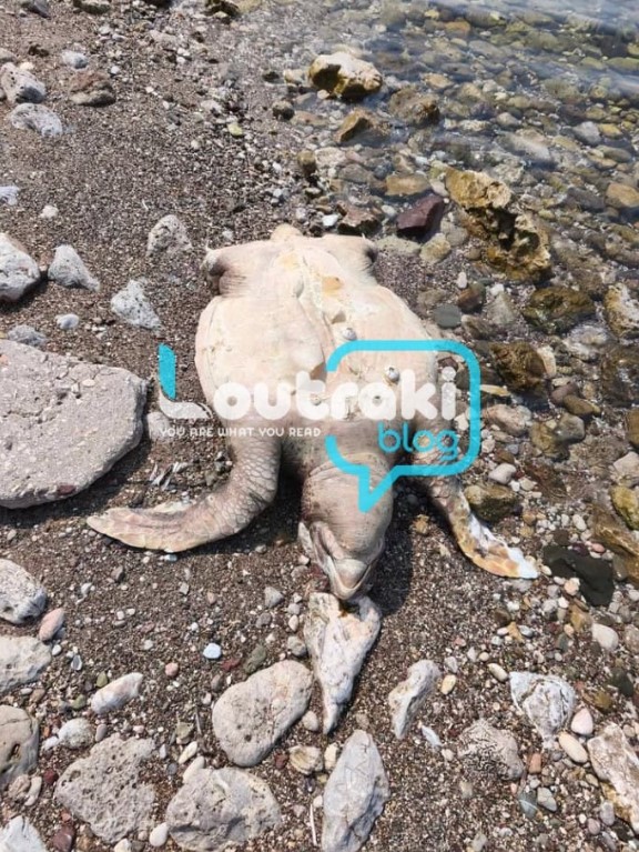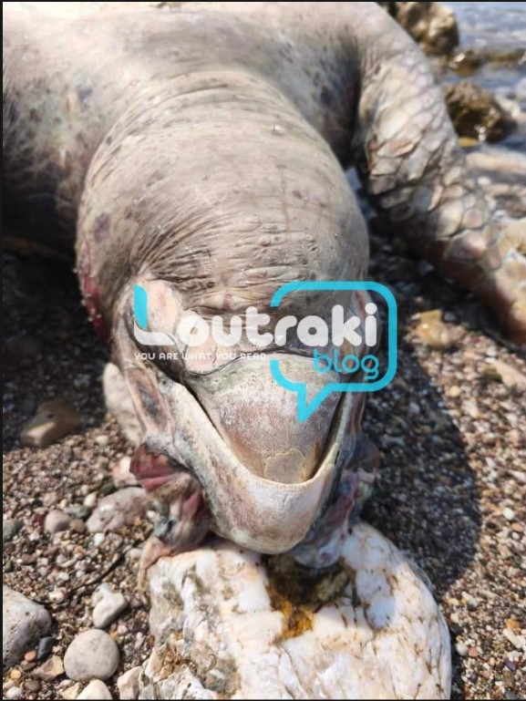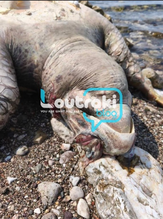 Μια νεκρή θαλάσσια χελώνα ξεβράστηκε τις προηγούμενες μέρες στην παραλία Φλάμπουρο. Τις φωτογραφίες μας τις έστειλε αναγνώστης.