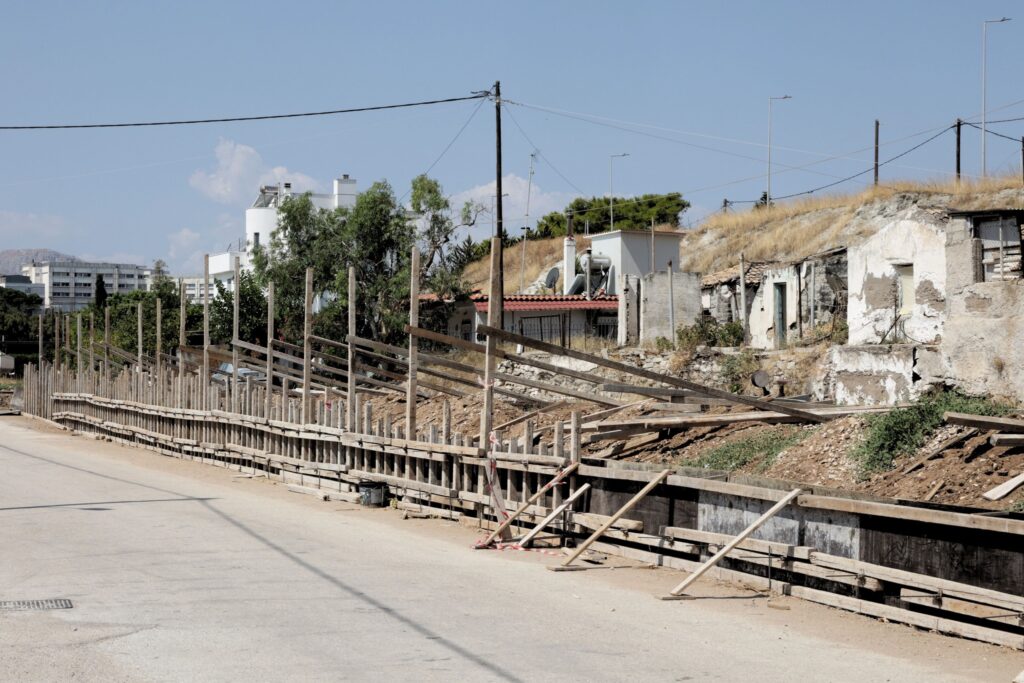 Από τη μία πλευρά, κατασκευάζεται πεζόδρομος με πλούσια δενδροφύτευση και χώρους ανάπαυσης.