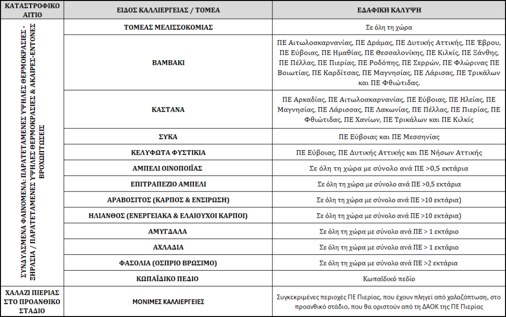 Είναι ενεργοί γεωργοί και καλλιεργούν σε συγκεκριμένες Περιφερειακές Ενότητες, που έχουν σημειωθεί ζημιές από τον καύσωνα και την ξηρασία και φαίνονται στον ακόλουθο πίνακα: