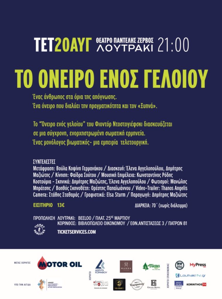 Λουτράκι: «Το όνειρο ενός γελοίου» ξεδιπλώνεται στο Θέατρο Παντελής Ζερβός