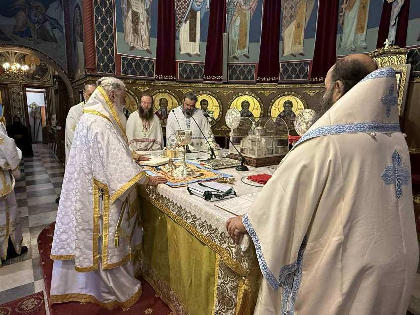 Την Κυριακή, 10 Αυγούστου 2025, στον Καθεδρικό Ι. Ναό του Αποστόλου Παύλου Κορίνθου, λειτούργησε ο Τοποτηρητής της Ι. Μητροπόλεως μας Σεβ. Μητροπολίτης Καλαβρύτων και Αιγιαλείας κ. Ιερώνυμος, συλλειτουργούντος του Θεοφιλεστάτου Πρωτοσυγκέλλου της Ι. Μητροπόλεως μας Επισκόπου Κεγχρεών κ. Αγαπίου, του Πανοσ. Αρχιμ. π. Δαμασκηνού Γεννηματά, των Αιδεσ. Πρωτ/ρων π. Αποστόλου Δαλιάνη, συνταξιούχου Κληρικού της Ι. Μητροπόλεως Καλαβρύτων και Αιγιαλείας, π. Γρηγορίου Θεοδώρου, συνταξιούχου Κληρικού της Ι. Μητροπόλεως μας, π. Παναγιώτου Μαυραγάνη, Αρχιερατικού Επιτρόπου Κορίνθου – Λουτρακίου και Προϊσταμένου του Καθεδρικού Ι. Ναού, π. Αθανασίου Κοντογιάννη και των Διακόνων π. Χρήστου Χίλια και π. Αγγέλου Σαλάτα.