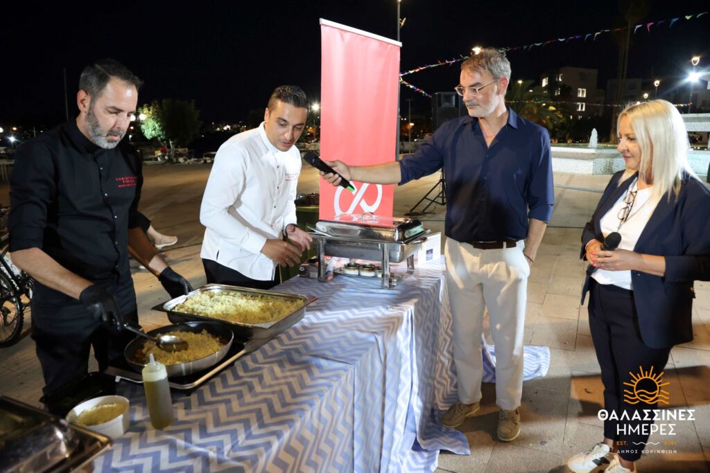 Στο λιμάνι της Κορίνθου, οι «Τενέατισες» και ο Σύλλογος Γυναικών Σολυγείας «Λέλα Ιατρίδη» πρόσφεραν κεράσματα, ζωντανές μαγειρικές επιδείξεις και παραδοσιακές γεύσεις, ενώ τοπικοί παραγωγοί παρουσίασαν τα ξεχωριστά τους προϊόντα.