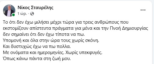 Με δήλωσή του πριν από λίγο ο Νίκος Σταυρέλης δεν αφήνει περιθώρια παρερμηνειών, προαναγγέλει απαντήσεις με ονόματα και ημερομηνίες. Η υπομονή του τελείωσε όπως λέει!