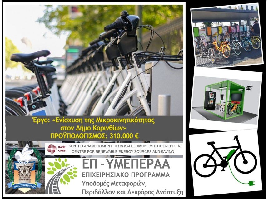 Μετά την διατύπωση θετικής γνώμης για το τεύχος της διακήρυξης και την διαγωνιστική διαδικασία από την αρμόδια διαχειριστική αρχή του Υπουργείου Ανάπτυξης & Επενδύσεων (Ειδική Γραμματεία Διαχείρισης Προγραμμάτων Ευρωπαϊκού Ταμείου Περιφερειακής Ανάπτυξης & Ταμείου Συνοχής), σήμερα Τρίτη 28/3/2023 η Οικονομική Επιτροπή του Δήμου Κορινθίων ενέκρινε αντίστοιχα την εν λόγω διαγωνιστική διαδικασία του έργου «Ενίσχυση της Μικροκινητικότητας στο Δήμο Κορινθίων», προϋπολογισμού: 309.837,56 € και χρηματοδότησης από το Πρόγραμμα “Βιώσιμη μικροκινητικότητα μέσω συστήματος κοινόχρηστων ποδηλάτων σε Δήμους της Χώρας (εκτός Δήμων Μητροπολιτικών Κέντρων)”.