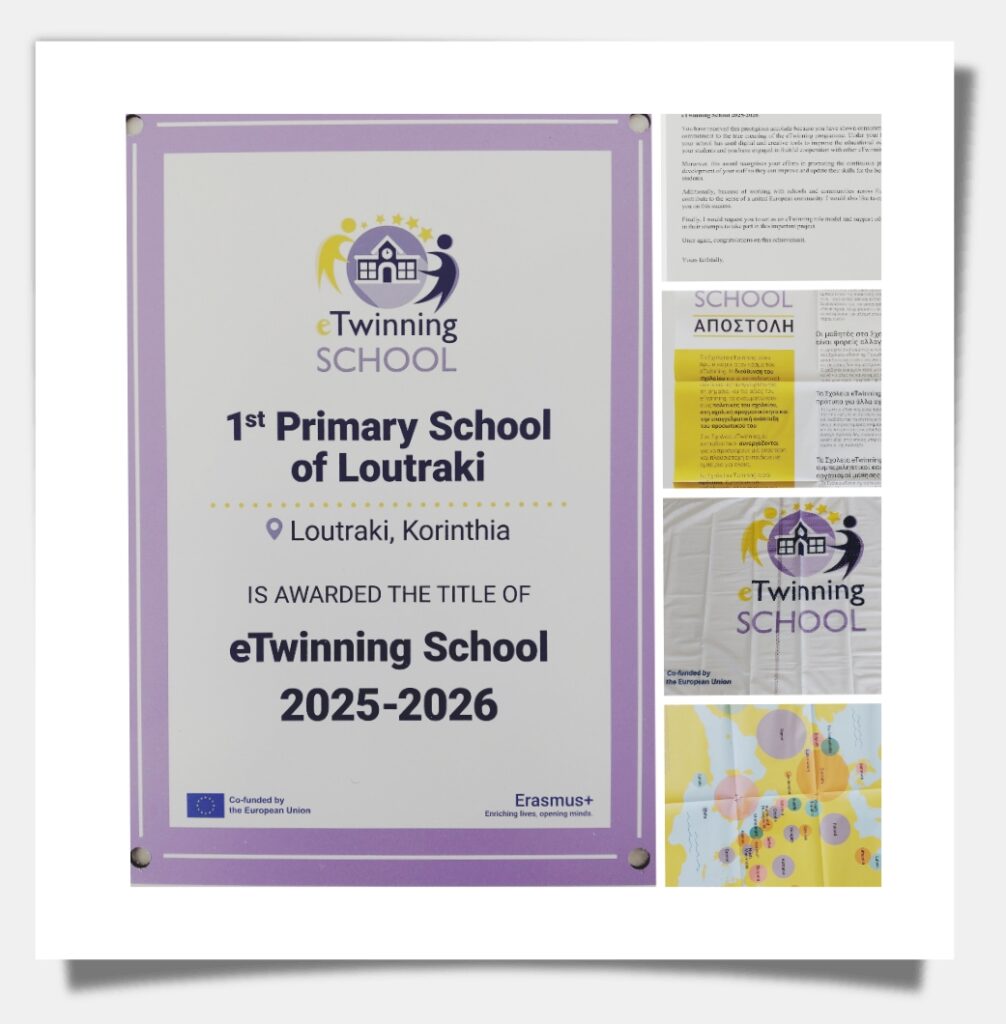 Με μεγάλη χαρά και υπερηφάνεια το σχολείο μας παρέλαβε το σήμα eTwinning School, τη σημαία eTwinning School, αφίσες και επίσημη-τιμητική επιστολή από την Ευρωπαϊκή Επιτροπή!