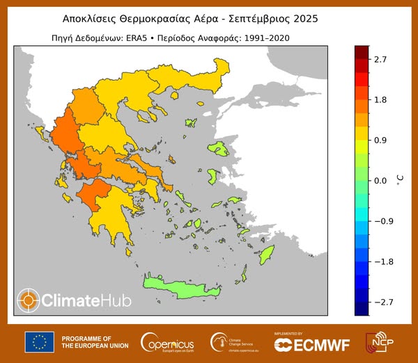 Σεπτέμβριος 2025: ο έκτος θερμότερος Σεπτέμβριος στην Ελλάδα για την περίοδο 1979–2025!