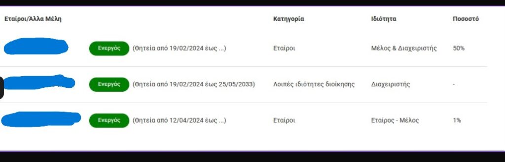 Μέλος της εταιρείας επίσης, φέρεται να είναι η σύζυγος του μέλους του Διοικητικού Συμβουλίου του Επιμελητηρίου Κορινθίας., με ποσοστό 1%.