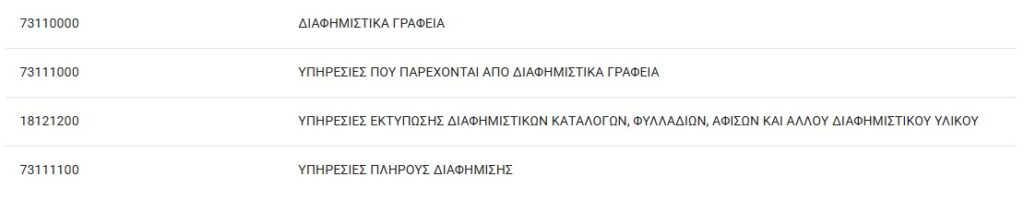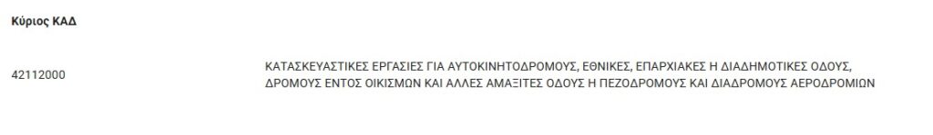 Δεκάδες ΚΑΔ της εταιρείας αφορούν στον κατασκευαστικό τομέα ενώ υπάρχουν και λίγοι ΚΑΔ για διαφημιστικές υπηρεσίες. Δείτε εδώ: