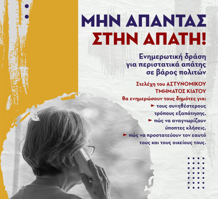 «Μην Απαντάς στην Απάτη»: Ενημερωτική δράση στο Κιάτο για τις σύγχρονες μορφές εξαπάτησης