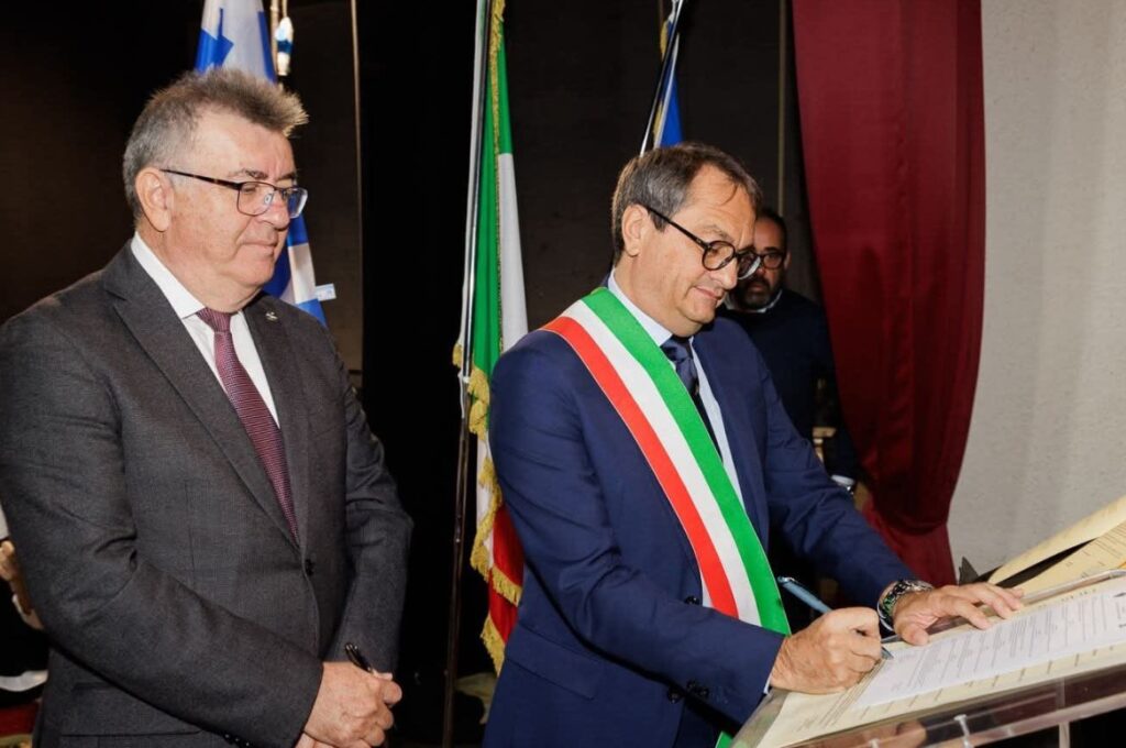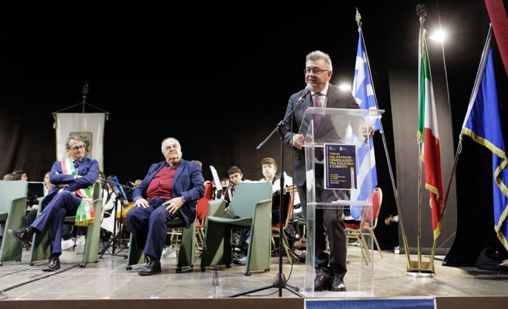 Ένα ακόμη βήμα εξωστρέφειας έκανε χτες (12 Νοεμβρίου 2025) ο Δήμος Κορινθίων με την υπογραφή του Μνημονίου Αδελφοποίησης της Κορίνθου με την ιταλική πόλη Γκαλατίνα, από τον Δήμαρχο Κορινθίων, Νίκο Σταυρέλη, και τον ομόλογό του της ιταλικής πόλης, Φάμπιο Βερτζίνε.