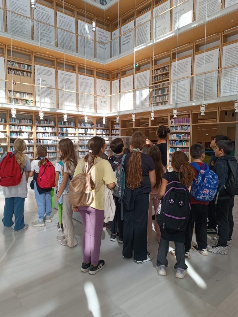 Την Παρασκευή 7 Νοεμβρίου οι μαθητές/τριες της Δ’ τάξης του σχολείου μας με τις εκπαιδευτικούς κ. Σοφία Γεωργίου, κ. Αγγελική Κιοσέ και κ. Μαρία Δάφνη Ζαμπούρα είχαν την ευκαιρία να ξεναγηθούν στην Εθνική Βιβλιοθήκη Ελλάδος που βρίσκεται στο Ίδρυμα Πολιτισμού Σταύρος Νιάρχος.