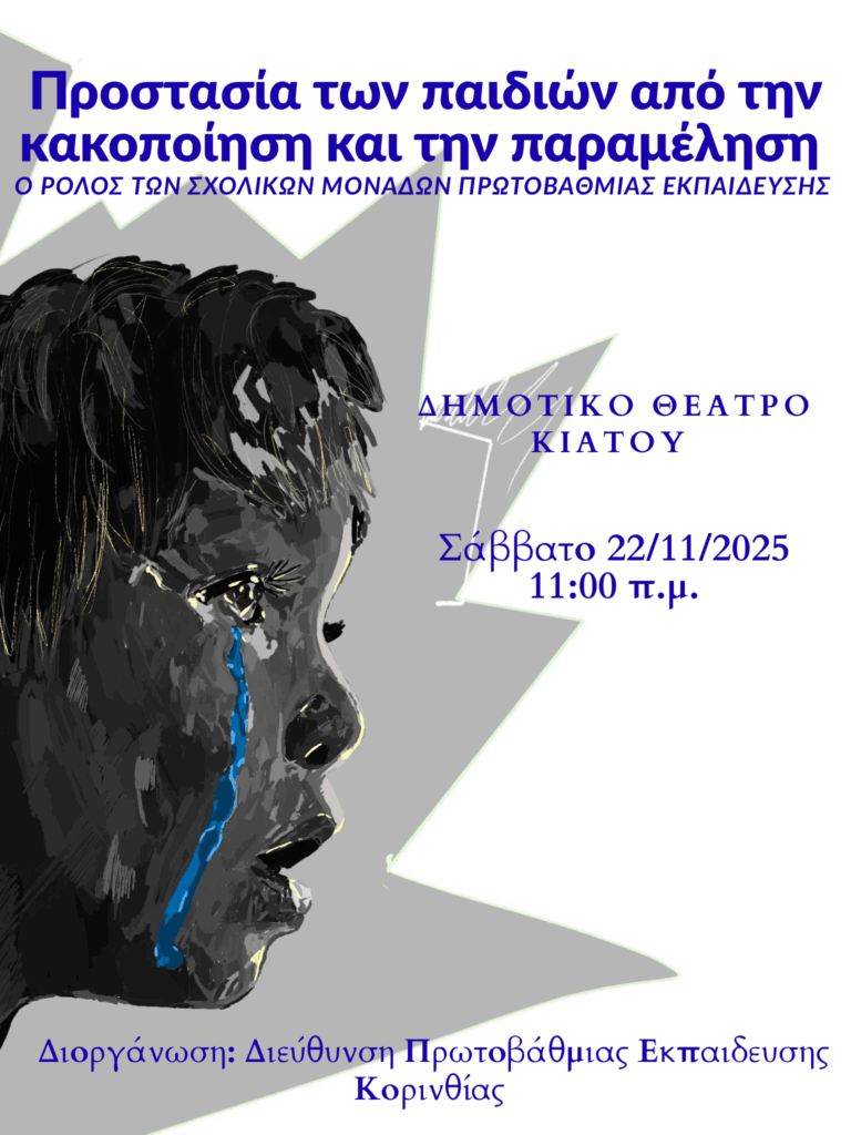 Η Διεύθυνση Πρωτοβάθμιας Εκπαίδευσης Κορινθίας διοργανώνει εκδήλωση με θέμα: “Προστασία των παιδιών από την κακοποίηση και την παραμέληση.