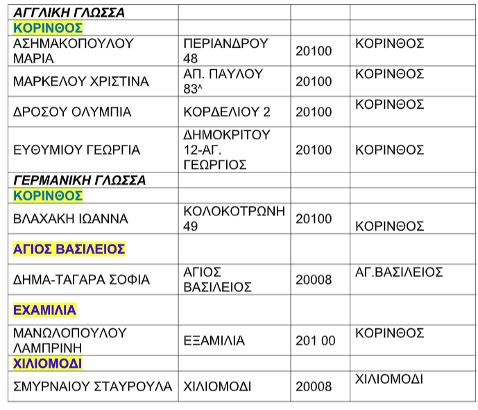 Ο Αντιδήμαρχος Κοινωνικής Πολιτικής Δήμου Κορινθίων, Xρήστος Μελέτης, ανακοινώνει ότι παρατείνεται μέχρι και την Παρασκευή 28 Νοεμβρίου η ημερομηνία κατάθεσης αιτήσεων και δικαιολογητικών για τις δωρεάν κοινωνικές θέσεις φοίτησης σε παιδιά οικονομικά αδύναμων οικογενειών που προσφέρει για ακόμα μια χρονιά ο σύλλογος Φροντιστηρίων ξένων γλωσσών του Δήμου μας.