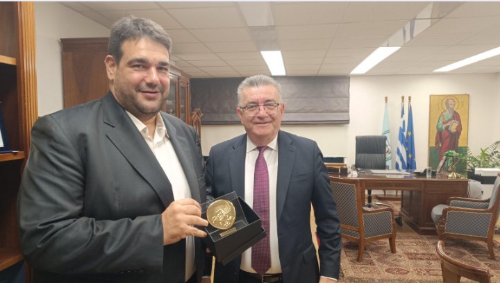 Στο πλαίσιο της επίσκεψης, ο Δήμαρχος προσέφερε στον Υπουργό έργο τέχνης με τον Πήγασο, σύμβολο της Αρχαίας Κορίνθου και απεικόνιση που παραπέμπει στο αρχαίο κορινθιακό νόμισμα.
