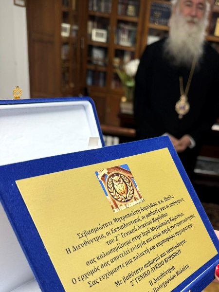 Μαθητές του 2ου Λυκείου Κορίνθου επισκέφθηκαν τον Σεβ. Μητροπολίτη κ. Παύλο στα γραφεία της Ι. Μητροπόλεως