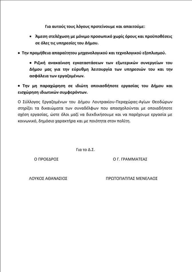 -Δυσαρέσκεια του Σωματείου για την δημοτική αρχή αλλά και τον αντιδήμαρχο Καθαριότητας.