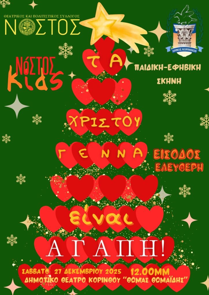 INFOΣάββατο 27/1212 το μεσημέρι Δημοτικό Θέατρο Κορίνθου «Θωμάς Θωμαΐδης»ΕΙΣΟΔΟΣ ΕΛΕΥΘΕΡΗ