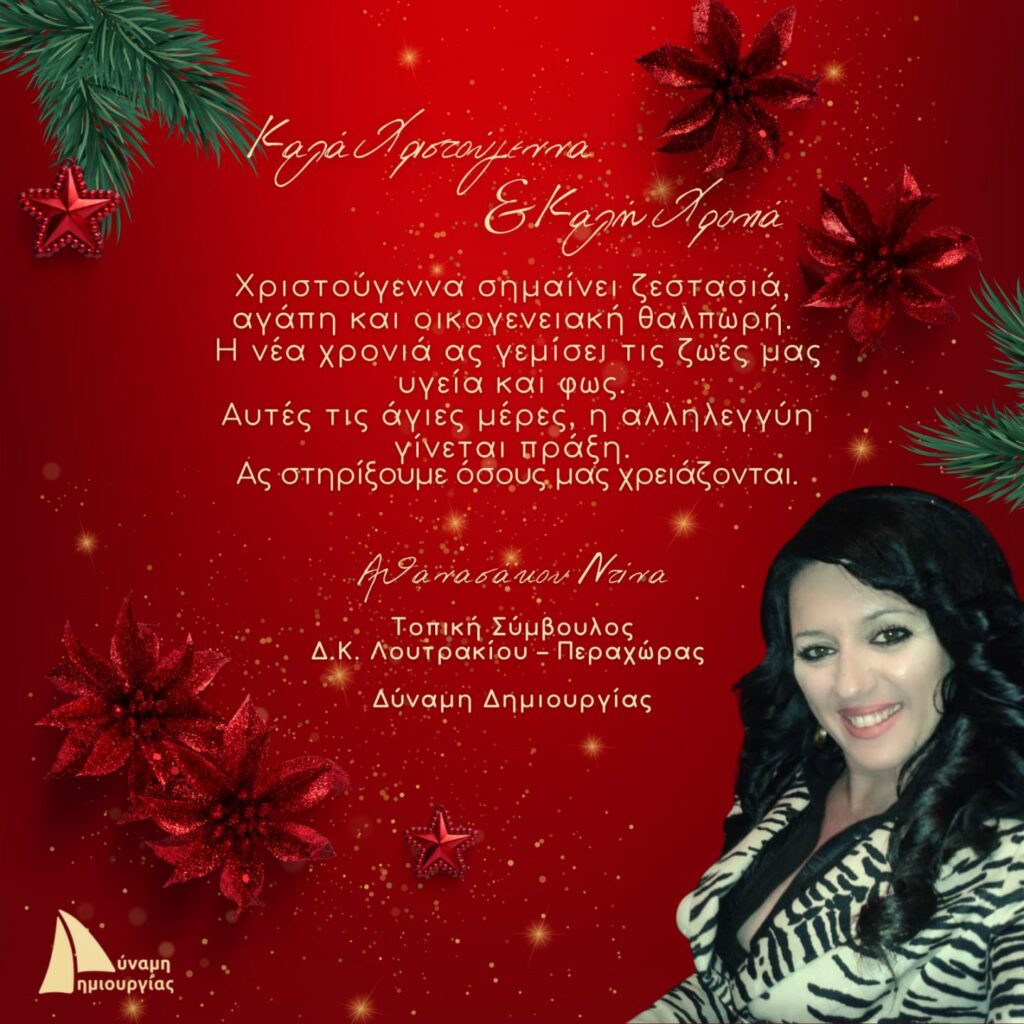 ΤΟΠΙΚΑΚορινθία Χριστουγεννιάτικες ευχές από την σύμβουλο της Δ.Κοινότητας Ντίνα Αθανασάκου 19 Δεκεμβρίου 2025, 10:04 FacebookTwitterEmailCopy URLΤυπώνω - Advertisement - Η σύμβουλος της Δημοτικής Κοινότητας Λουτρακίου-Περαχώρας, Ντίνα Αθανασάκου, σας εύχεται για τις γιορτές! - Advertisement - ΑΦΗΣΤΕ ΜΙΑ ΑΠΑΝΤΗΣΗ Ακύρωση απάντησης Σχόλιο: εισάγετε το σχόλιό σας! Όνομα: παρακαλώ εισάγετε το όνομά σας εδώ Email: έχετε εισάγει εσφαλμένη διεύθυνση ηλεκτρονικού ταχυδρομείου! παρακαλώ εισάγετε εδώ την ηλεκτρονική σας διεύθυνση Ιστοσελίδα: αποθηκεύστε το όνομα, το ηλεκτρονικό ταχυδρομείο και τον ιστότοπό μου σε αυτό το πρόγραμμα περιήγησης για την επόμενη φορά που θα σχολιάσω. Δ Δείτε ακόμα Λουτράκι Xριστουγεννιάτικη παράσταση για καλό σκοπό από τον ΙΒΥΚΟ Κορινθία Πρόληψη, Αυτοέλεγχος & Ασφαλής Οδήγηση. Δεύτερη Μεγάλη Δράση στην Κόρινθο Ελλάδα Τι θα γίνει με τα αγροτικά μπλόκα Χριστούγεννα και Πρωτοχρονιά Ελλάδα ΠΟΜΙΔΑ για το στεγαστικό: Θετικά τα μέτρα, ολέθρια η αυτόματη διαγραφή καταλυμάτων βραχυχρόνιας μίσθωσης Ελλάδα Η Ελλάδα παρέλαβε την πρώτη φρεγάτα Belharra Σχετικά άρθρα Λουτράκι Xριστουγεννιάτικη παράσταση για καλό σκοπό από τον ΙΒΥΚΟ Κορινθία Πρόληψη, Αυτοέλεγχος & Ασφαλής Οδήγηση. Δεύτερη Μεγάλη Δράση στην Κόρινθο Δημοτικά Συμβούλια Ξυλόκαστρο: Συνεδριάζει το Δημοτικό Συμβούλιο την Δευτέρα 22 Δεκεμβρίου Κορινθία Χριστουγεννιάτικη Γιορτή για Μικρούς και Μεγάλους στο Δερβένι