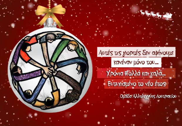 H Ομάδα Αλληλεγγύης Λουτρακίου, σας εύχεται Χρόνια Πολλά, χρόνια αγάπης, χρόνια δημιουργικά, χρόνια τυχερά, χρόνια με υγεία, χρόνια ειρηνικά, χρόνια ΑΛΛΗΛΕΓΓΥΗΣ!..
