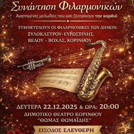 Ξυλόκαστρο: Χριστουγεννιάτικη Συνάντηση Φιλαρμονικών σήμερα το βράδυ