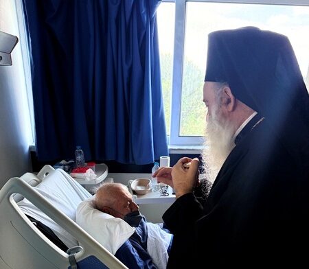 Ο Σεβασμιώτατος αφού συναντήθηκε με τον Διοικητή του Νοσοκομείου κ. Γρηγόριο Καρπούζη και μέλη του Δ.Σ., επισκέφθηκε τους θαλάμους νοσηλείας, μοίρασε ευλογίες, ευχήθηκε από καρδιάς ταχεία ανάρρωση στους ασθενείς και συνεχάρη όλο το προσωπικό για την επιτέλεση του σπουδαίου και ευθυνοφόρου διακονήματός τους τις ημέρες αυτές.