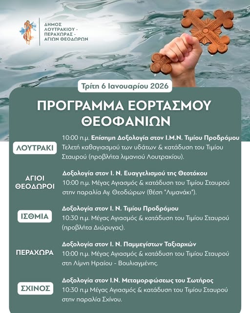 Σας προσκαλούμε να τιμήσετε με την παρουσία σας τον εορτασμό των Θεοφανίων και τον Μέγα Αγιασμό των Υδάτων.