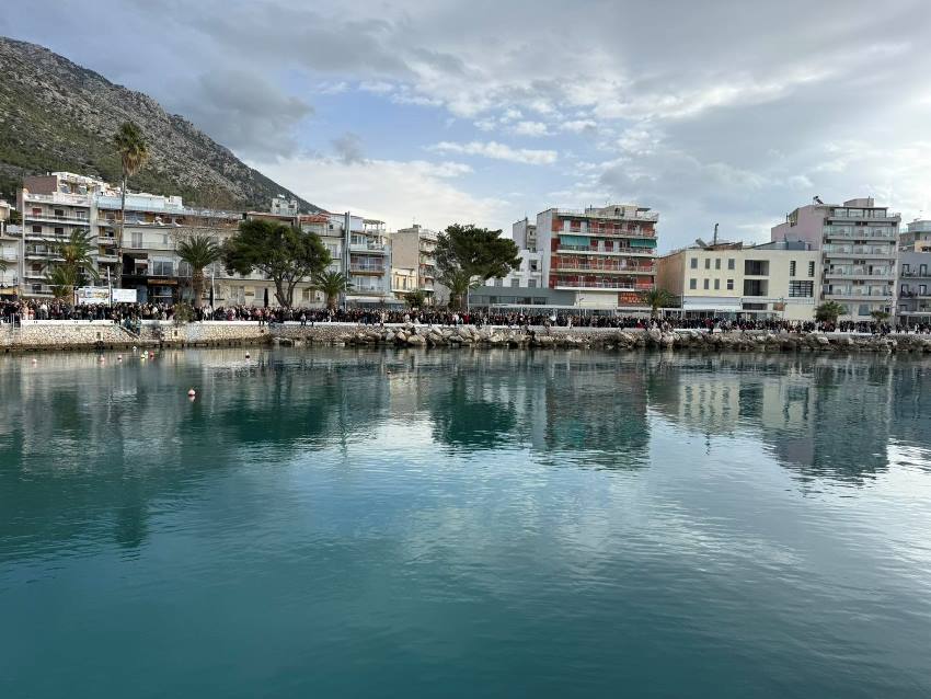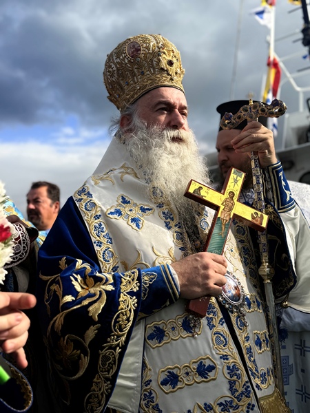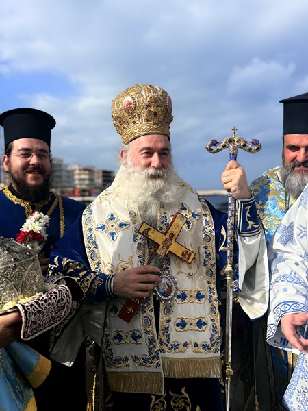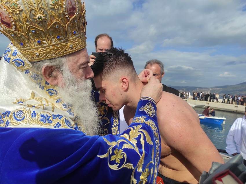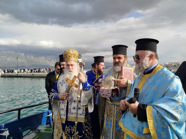 Στο λιμάνι περίμενε σκάφος (ευγενική προσφορά) από τη «Διώρυγα Κορίνθου», στο οποίο επιβιβάσθηκαν ο Μητροπολίτης και ο Ιερός Κλήρος, προκειμένου να πραγματοποιηθεί η Κατάδυση του Τιμίου Σταυρού. Με τη συμμετοχή 63 κολυμβητών, τον Τίμιο Σταυρό ανέσυρε ο κ. Αριστείδης Δημάκης, φοιτητής, λαμβάνοντας ως ευλογία από τον Μητροπολίτη ένα χρυσό σταυρό, ενώ οι υπόλοιποι κολυμβητές έλαβαν αντιστοίχως από έναν ασημένιο σταυρό. Η τελετή ολοκληρώθηκε με τις ευλογίες και τις θερμές ευχαριστίες του Μητροπολίτου προς τις Αρχές, τον Κλήρο και τον Λαό, που συμμετείχαν πάνδημα στον εορτασμό των Θεοφανείων.