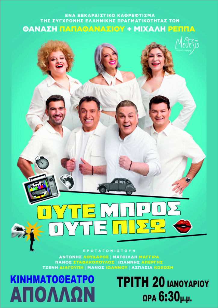 Επίσης, προσφέρεται η δυνατότητα παρακολούθησης της θεατρικής παράστασης «Ούτε μπρος, ούτε πίσω» με τους Αντώνη Λουδάρο, Ματθίλδη Μαγγίρα, Πάνο Σταθακόπουλο, Ιωάννη Απέργη, Τζένη Διαδούπη, Μάνο Ιωάννου και Ασπασία Κοκόση. Το έργο «Ούτε Μπρος ούτε Πίσω» είναι ένα ξεκαρδιστικό καθρέφτισμα της σύγχρονης Ελληνικής πραγματικότητας, με μουσική και τραγούδια, που σατιρίζει το εδώ και το τώρα. Αυτό που συμβαίνει στα σπίτια μας, στους δρόμους, στις πλατείες, στην τηλεόραση, στα μέσα κοινωνικής δικτύωσης. Κομμάτια και αποσπάσματα ζωής και ιστορίες καθημερινής τρέλας σαν σύντομα φλας που πυκνώνουν ό,τι μας απελπίζει και ό,τι μας δίνει ελπίδα.