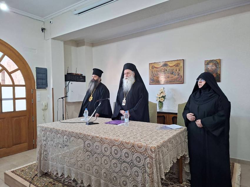 Μετά το πέρας της Θ. Λειτουργίας, ξεκίνησαν οι εργασίες της σύναξης στο Συνοδικό του Ι. Ησυχαστηρίου με την Καθηγουμένη Γερόντισσα Ιλαρία να απευθύνει χαιρετισμό και εν συνεχεία με την εισήγηση του Σεβ. Μητροπολίτου. Μετά ακολούθησαν οι εισηγήσεις όλων των Καθηγουμένων και η ανταλλαγή απόψεων επί των μοναστικών ζητημάτων που ετέθησαν.