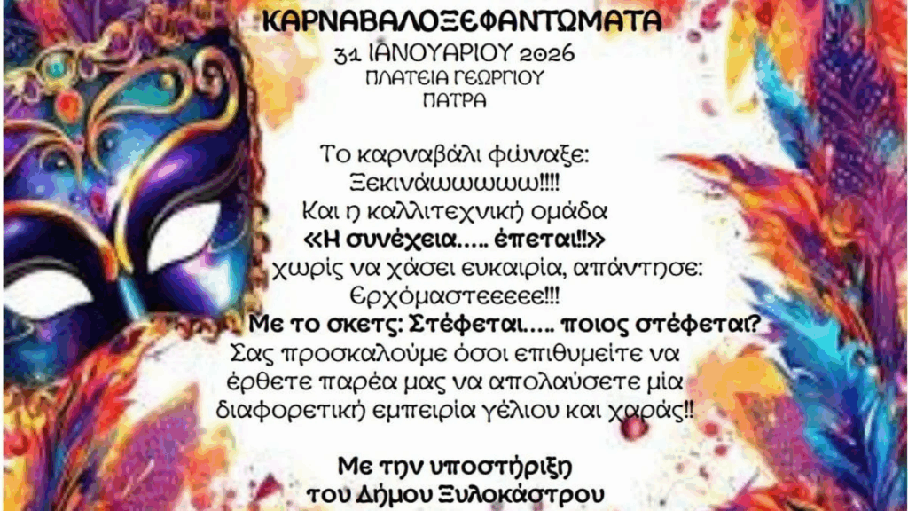 Η καλλιτεχνική ομάδα «Η συνέχεια…έπεται!!» πραγματοποιεί «ποδαρικό» για το 2026 με τη συμμετοχή του στο Πατρινό Καρναβάλι, λαμβάνοντας μέρος στα «Θέατρο Καρναβαλοξεφαντώματα» της Πάτρας.