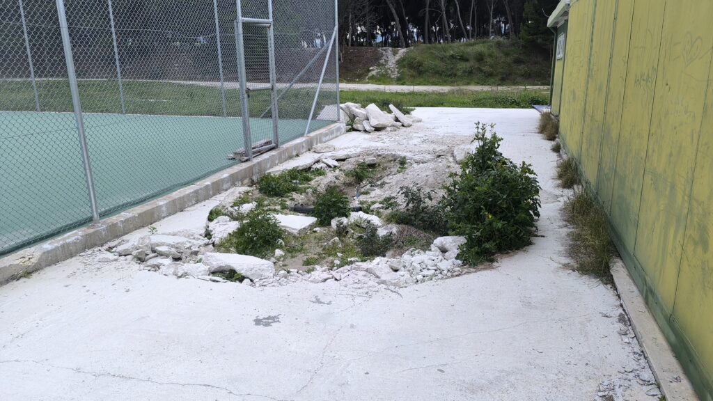 Η κατάσταση αυτή κρίνεται ιδιαίτερα επικίνδυνη, καθώς ο χώρος χρησιμοποιείται καθημερινά από παιδιά και αθλούμενους, με υπαρκτό κίνδυνο ατυχήματος.