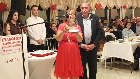 Η βουλευτής ευχήθηκε στον τιμώμενο υγεία και συνεχή προσφορά προς την κοινωνία, ενώ συνεχάρη θερμά το Διοικητικό Συμβούλιο του Συλλόγου