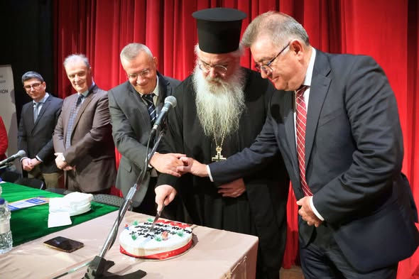 Η εκδήλωση συνδυάστηκε με την καθιερωμένη κοπή της πρωτοχρονιάτικης πίτας, την οποία ευλόγησε ο Πανοσιολογιότατος Αρχιμανδρίτης πατέρας Άνθιμος, εκπροσωπώντας τον Σεβασμιότατο Μητροπολίτη Κορίνθου κ.κ. Παύλο, σε ένα ζεστό και γιορτινό κλίμα.