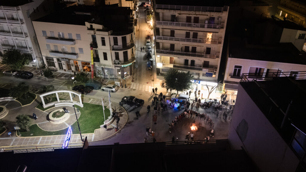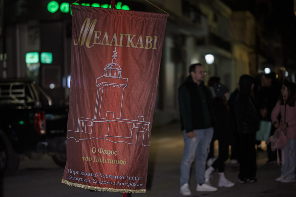 Με το άναμμα της καθιερωμένης φωτιάς από τον Πολιτιστικό Σύλλογο Λουτρακίου «Το Μελαγκάβι», μελωδίες που γέμισαν τον χώρο και μικρούς και μεγάλους πιασμένους χέρι-χέρι σε έναν μεγάλο, χαρούμενο κύκλο, άνοιξε επίσημα το Τριώδιο, ζωντανεύοντας το παραδοσιακό έθιμο του Χορού της Τράτας.