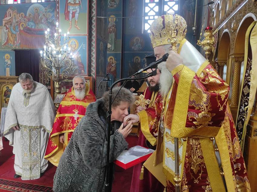 Τον Σεβασμιώτατο καλωσόρισε στην ενορία ο εκτελών χρέη Εφημερίου π. Κωνσταντίνος Γεωργίου, προσφέροντάς Του ως δώρο ένα Σταυρό Ευλογίας. Στο κήρυγμά του ο Σεβ. Μητροπολίτης, λαμβάνοντας αφορμή από το δώρο, αναφέρθηκε στη θυσιαστική και σταυρική πορεία της Αρχιεροσύνης και της Ιεροσύνης, λέγοντας χαρακτηριστικά ότι «ο Πρώτος που Σταυρώθηκε για όλους είναι ο Κύριος ημών Ιησούς Χριστός και όλοι μετά τη Σταύρωση, αναμένουμε να μας χαρίσει την Ανάσταση, όπως αναγράφεται στο απολυτίκιο της Εορτής της Υπαπαντής του Κυρίου».