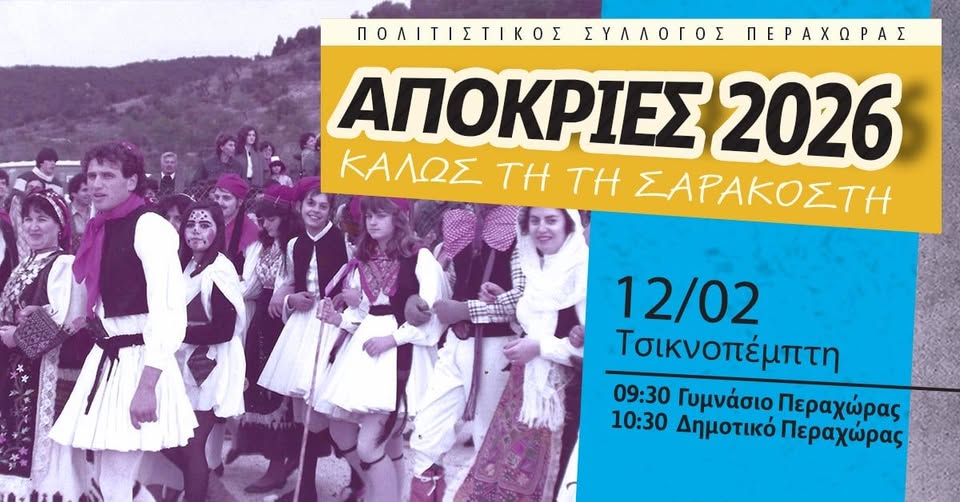 Σας περιμένουμε να αναβιώσουμε το έθιμο της Περαχωρίτικης Τράτας , τον Χορό του “Χαραλάμπη” ,όπως κάθε χρόνο, μαζί με τα παιδιά και τους εκπαιδευτικούς του χωριού μας!