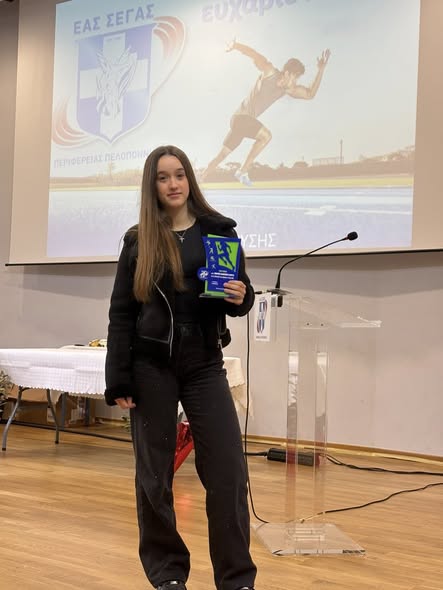 Η αθλήτρια του Α.Ο. Ποσειδών Λουτρακίου ξεχώρισε για τη συνεχή αγωνιστική της πρόοδο, με κορυφαία διάκριση την 5η θέση στα 80μ. Κ16 στο Πανελλήνιο Πρωτάθλημα 2025 και την πρόκρισή της στον τελικό της Θήβας, ανάμεσα στις 8 καλύτερες της Ελλάδας.