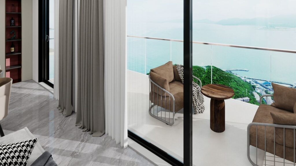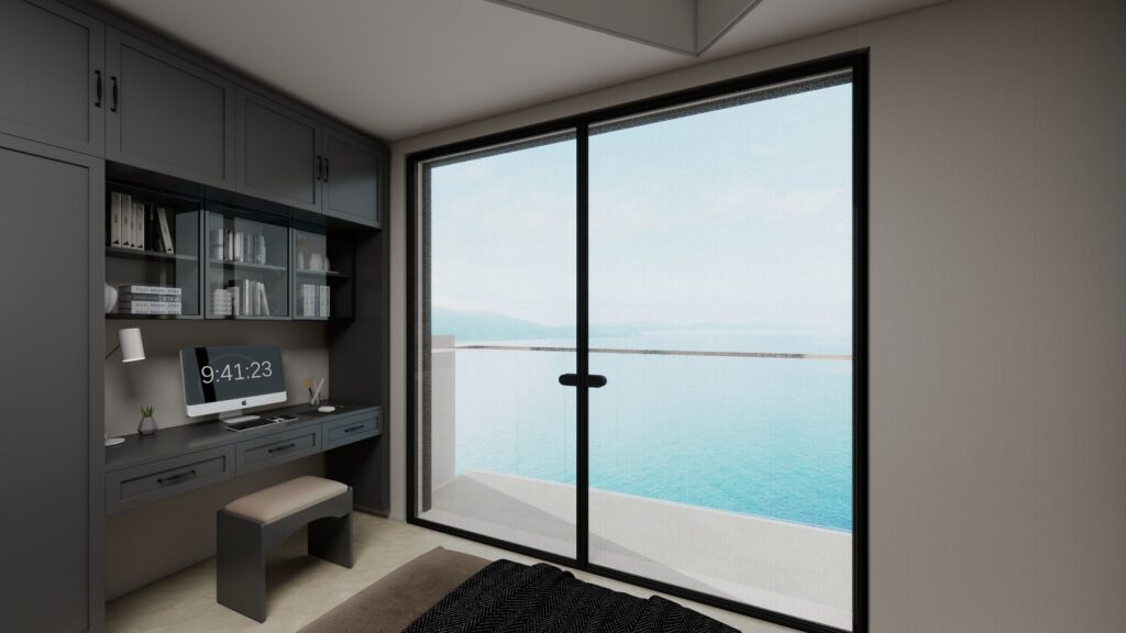- μεγάλες βεράντες με ανεμπόδιστη θέα στη θάλασσα,